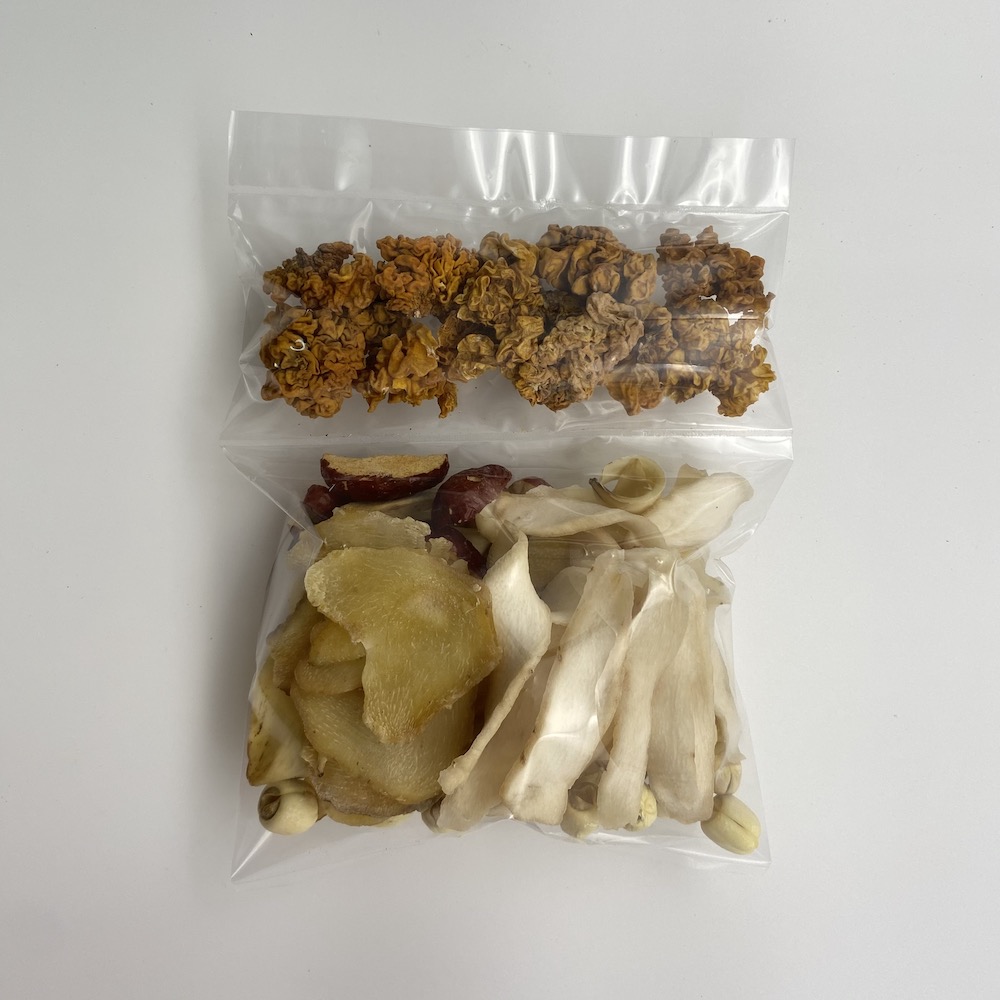 成份:黄耳、海玉竹、淮山、百合、白蓮子、紅棗。