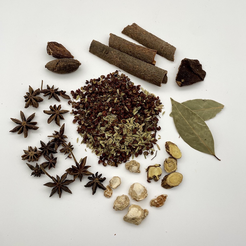 成份:桂皮、八角、花椒、小茴、草果、沙姜、甘草、香葉、陳皮。