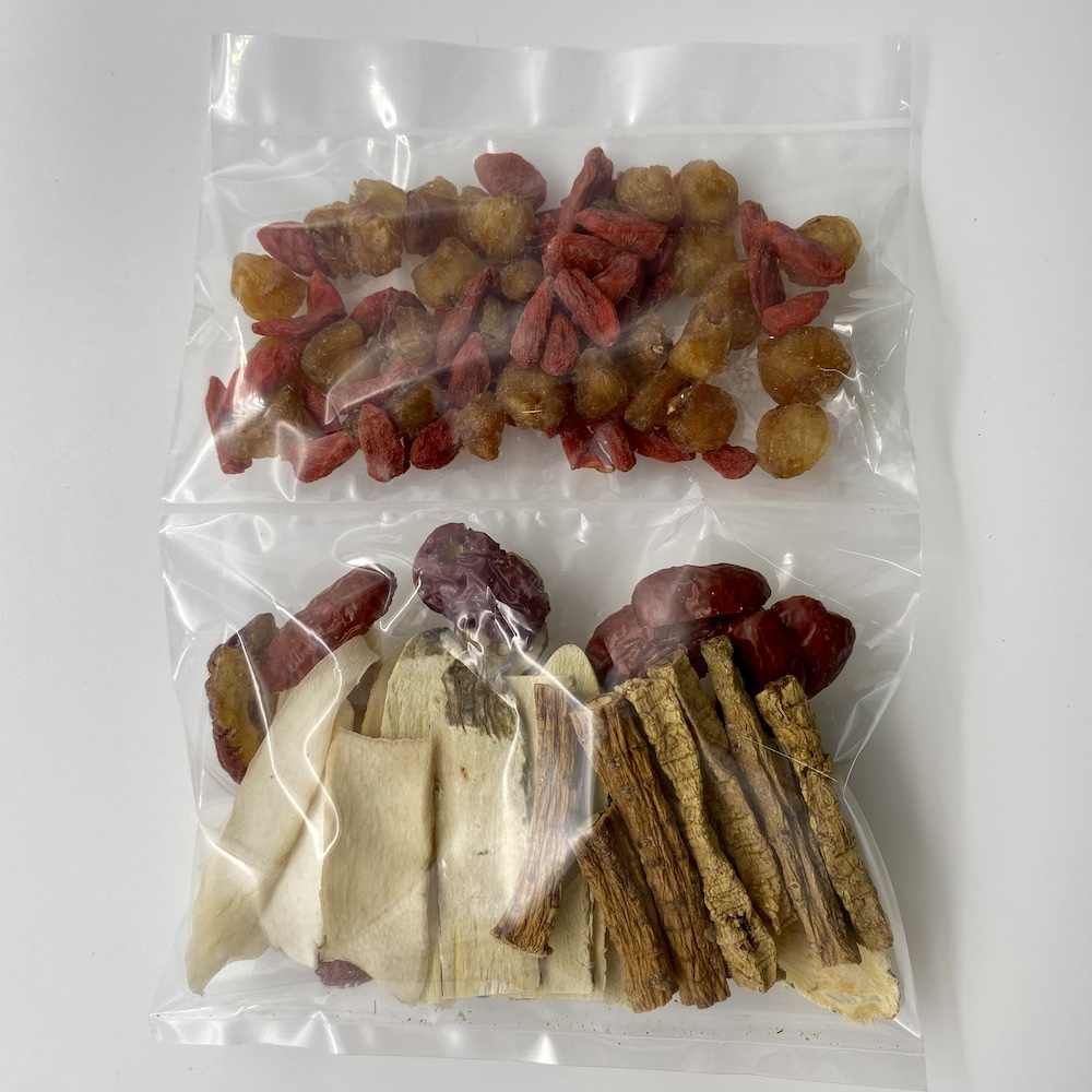 成份:制黨參、北芪、淮山、當歸、川芎、杞子、元肉、紅棗。